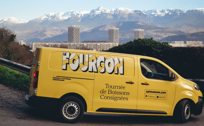 Au volant d'une fourgonnette électrique jaune beurre frais, Corentin Belot sillonne la banlieue de Lille pour sa seconde tournée de la journée, chargé de boissons consignées qu'il dépose sur les pas de porte.