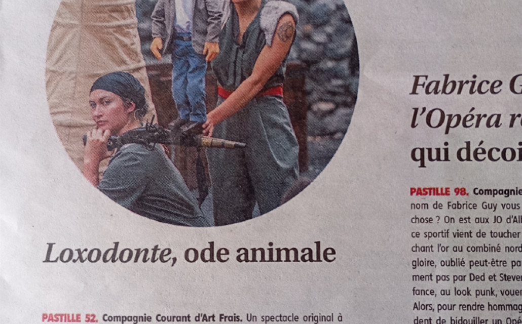 Pour les coups de cœur du festival d'Aurillac de la rédaction de La Montagne, court texte à propos du spectacle de marionnettes "Loxodonte" de la Compagnie Courant d’Art Frais, interprétation contemporaine du roman aux accents écologistes "Les Racines du Ciel", de Romain Gary.