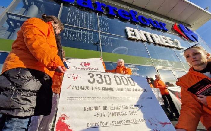 "On ne sait pas toujours ce qui se cache derrière une barquette" : L214 proteste contre Carrefour