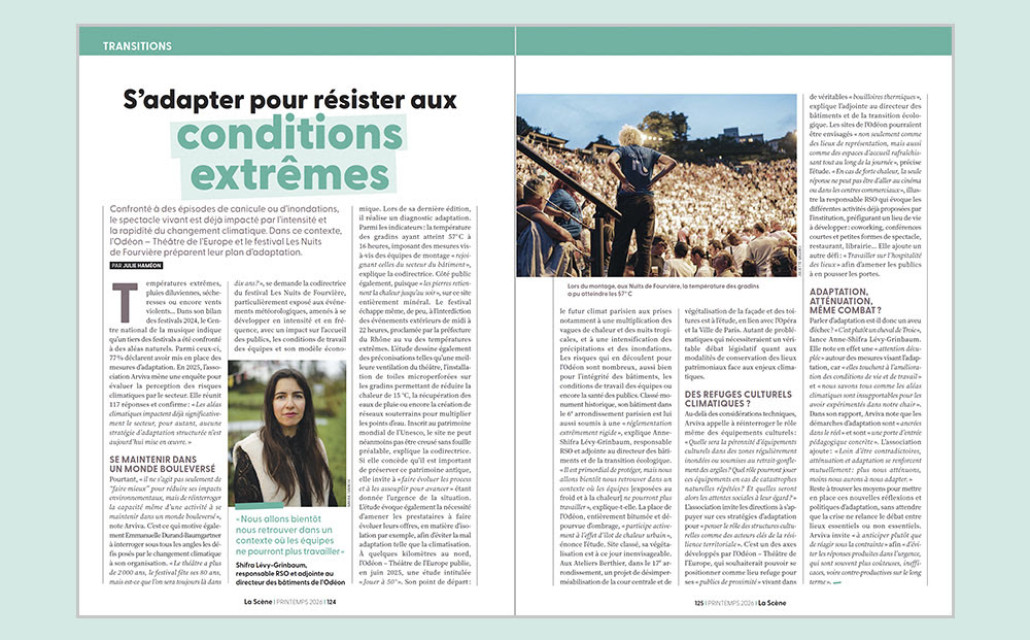 Confronté à des épisodes de canicule ou d'inondations, le spectacle vivant est déjà impacté par l'intensité et la rapidité du changement climatique. Dans ce contexte, l'Odéon - Théâtre de l'Europe et le festival Les Nuits de Fourvière préparent leur plan d'adaptation.