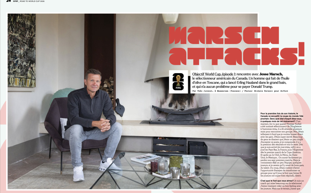 Objectif World Cup, épisode 1: rencontre avec Jesse Marsch, le sélectionneur américain du Canada. Un homme qui fait de l'huile d'olive en Toscane, qui a lancé Erling Haaland dans le grand bain, et qui n'a aucun problème pour se payer Donald Trump.