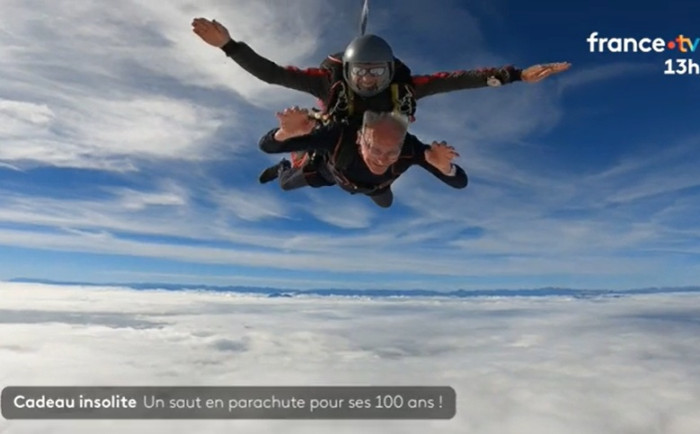 Pour fêter ses 100 ans, Lucien a décidé de s'offrir un saut dans les nuages, en Ariège. Le centenaire détient désormais le record de France de l'homme le plus âgé à avoir sauté en tandem. Un moment partagé par toute sa famille.