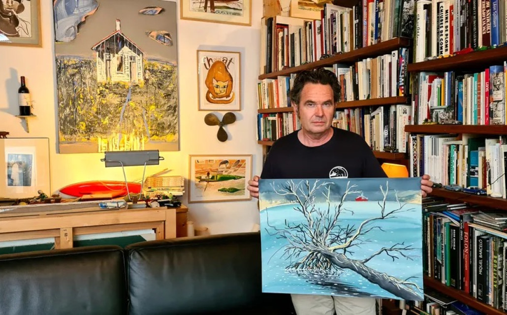 De retour à Paris, le peintre officiel de la Marine prépare un livre sur ses quelques jours passés avec l'équipage du brise-glace français au mois de mai, en mission spéciale dans les Terres australes et antarctiques françaises (TAAF).